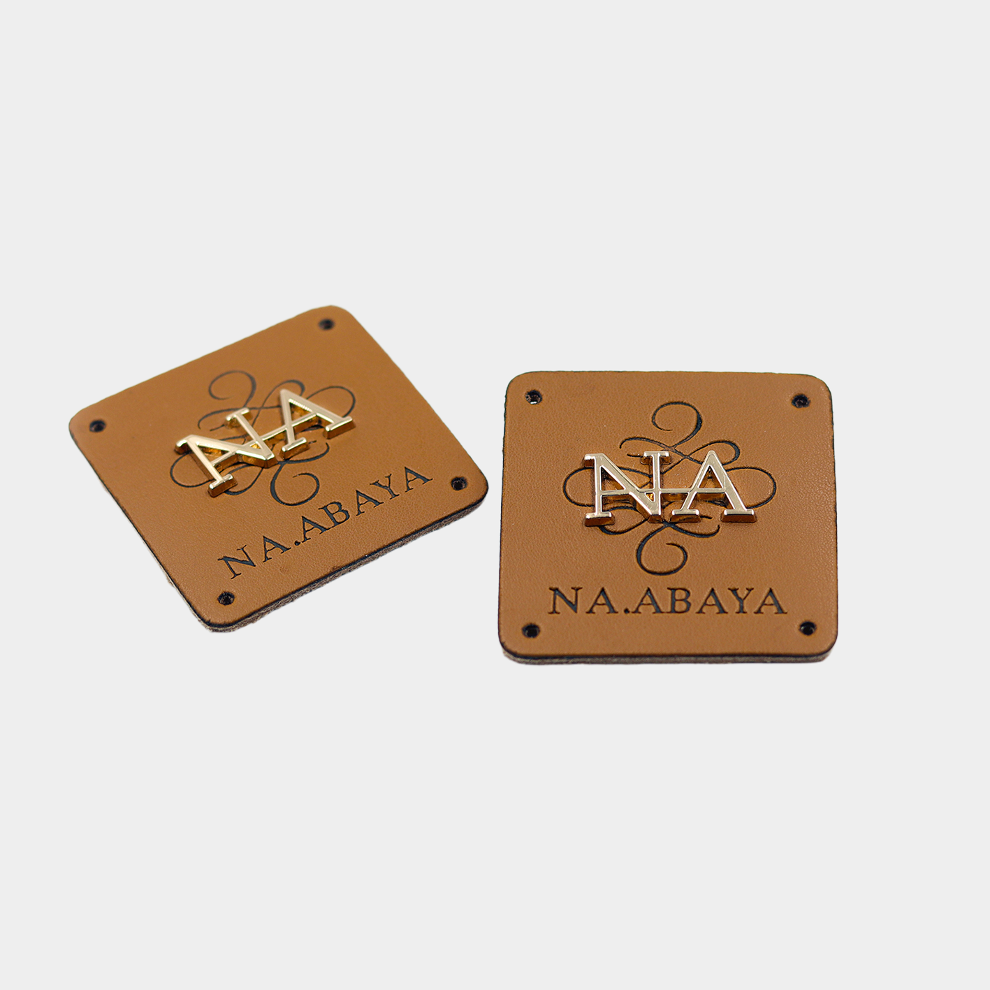 Leather with metal labels blend elegance and durability, adding a premium touch to abayas and clothing