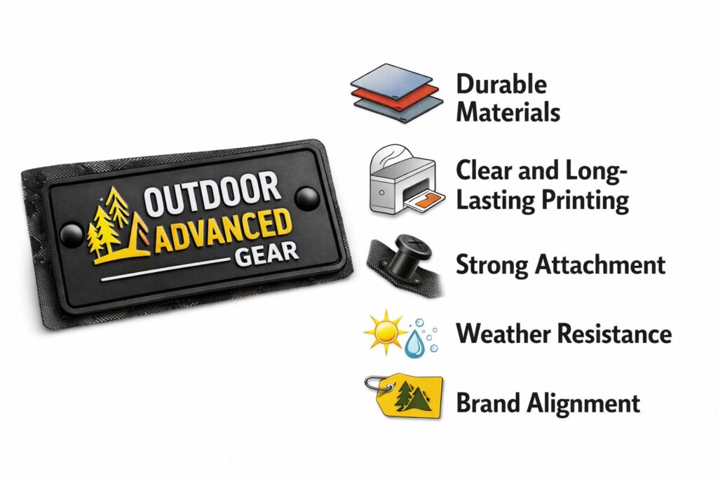 3. Strong Attachment: The label should be sewn, heat-pressed or bonded securely. Outdoor gear takes a lot of abuse, so attachment does matter.